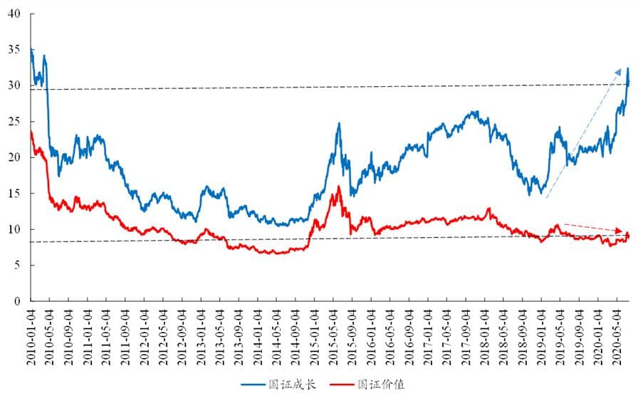 不过,彼时牟一凌对周期股的认知,尚未摆脱传统的周期股分析框架。虽然也有一些其他论据作为支撑,比如成长股与价值股相对估值的差距达到了历史最高位,但核心看的还是需求,在当年7月接受远川采访时,牟一凌曾经判断,“对于周期股的上涨,真正的逻辑只能是经济的复苏”,而“最佳弹性区间是在未来的两到三个季度[1]”。