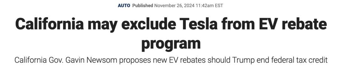 根据美股投资网的了解,如果特朗普取消电动车购买的联邦税收抵免政策,加州州长加文·纽森(Gavin Newsom)正计划调整州内的电动车补贴方案。