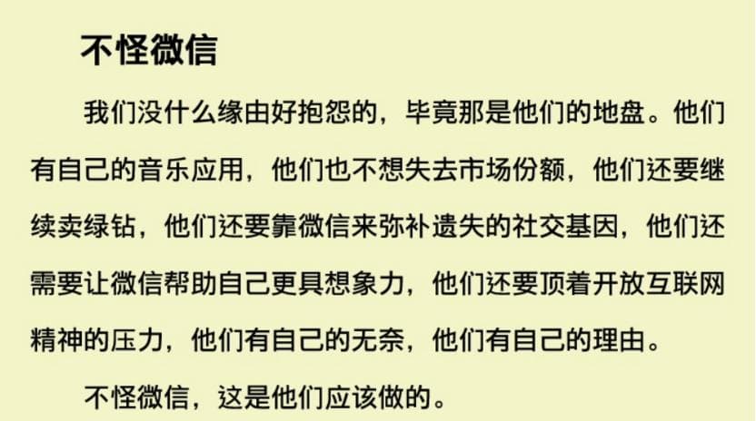 针对腾讯音乐制裁,网易云音乐当时就曾发布一条“不怪微信”的长微博,暗讽腾讯没有开放的互联网精神。对比今天公开指责“抄袭”的行为,言辞上更多了一丝阴阳的意味。