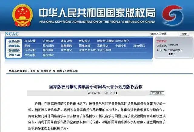 对于QQ音乐与网易云音乐之间进行的版权鏖战,国家版权局和国家市场监督管理总局接连进行干预。2018年,在国家版权局的推动下,腾讯音乐与网易云音乐在2018年进行了版权互授;2021年,国家市场监督管理总局责令腾讯音乐解除独家版权协议。