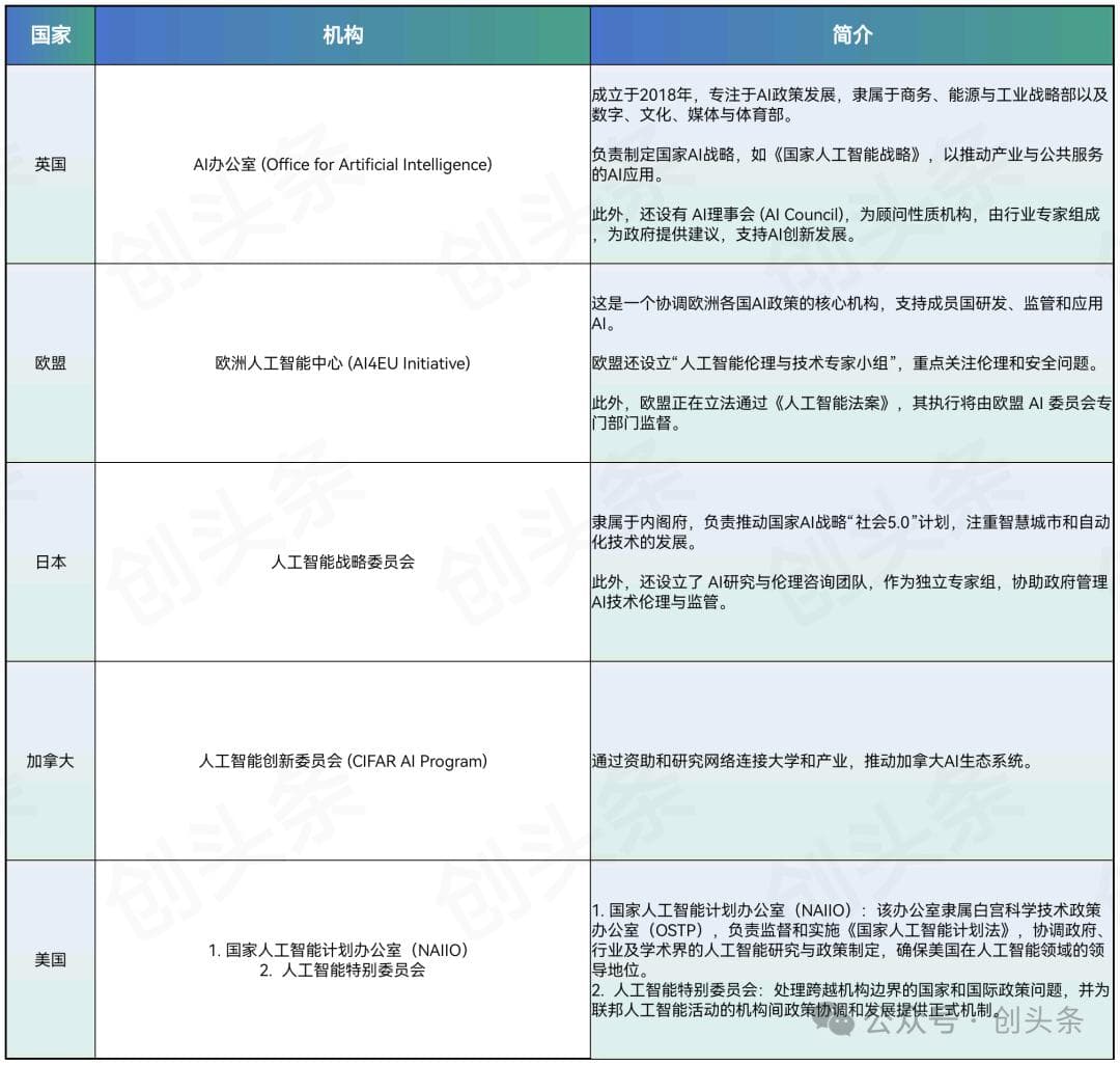 全球范围内,各个国家有针对人工智能设立了专门的机构。