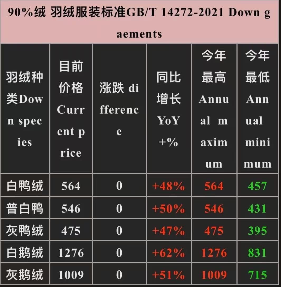 “去年90鸭绒一吨才30几万,今年直接跳到50多万,90鹅绒更是从去年的70几万飙升到今年的120万。”一位羽绒服厂家无奈地向剁椒透露,造成这一轮羽绒价格上涨的原因,主要是前期的猪肉价格较低,人们转向吃猪肉,导致鸭肉、鹅肉需求下降,进而影响了饲养量,进一步影响羽绒供应。