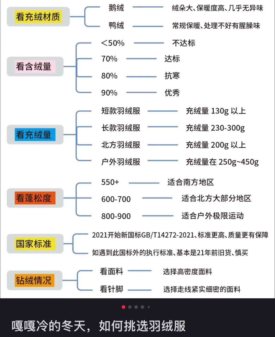 社交平台上,大量“自来水”强调:羽绒服的绒子含量需达到70%以上才算符合标准,而80%的含量才能有效御寒;北方地区充绒量至少需要200克,户外羽绒服至少250克以上;蓬松度在600到700之间,才能满足大部分北方地区的需求;GB/T14272-2021代表了最新的国家标准,不符合此标准的羽绒服很可能是旧款存货。民间的标准化正在成为一种追求。