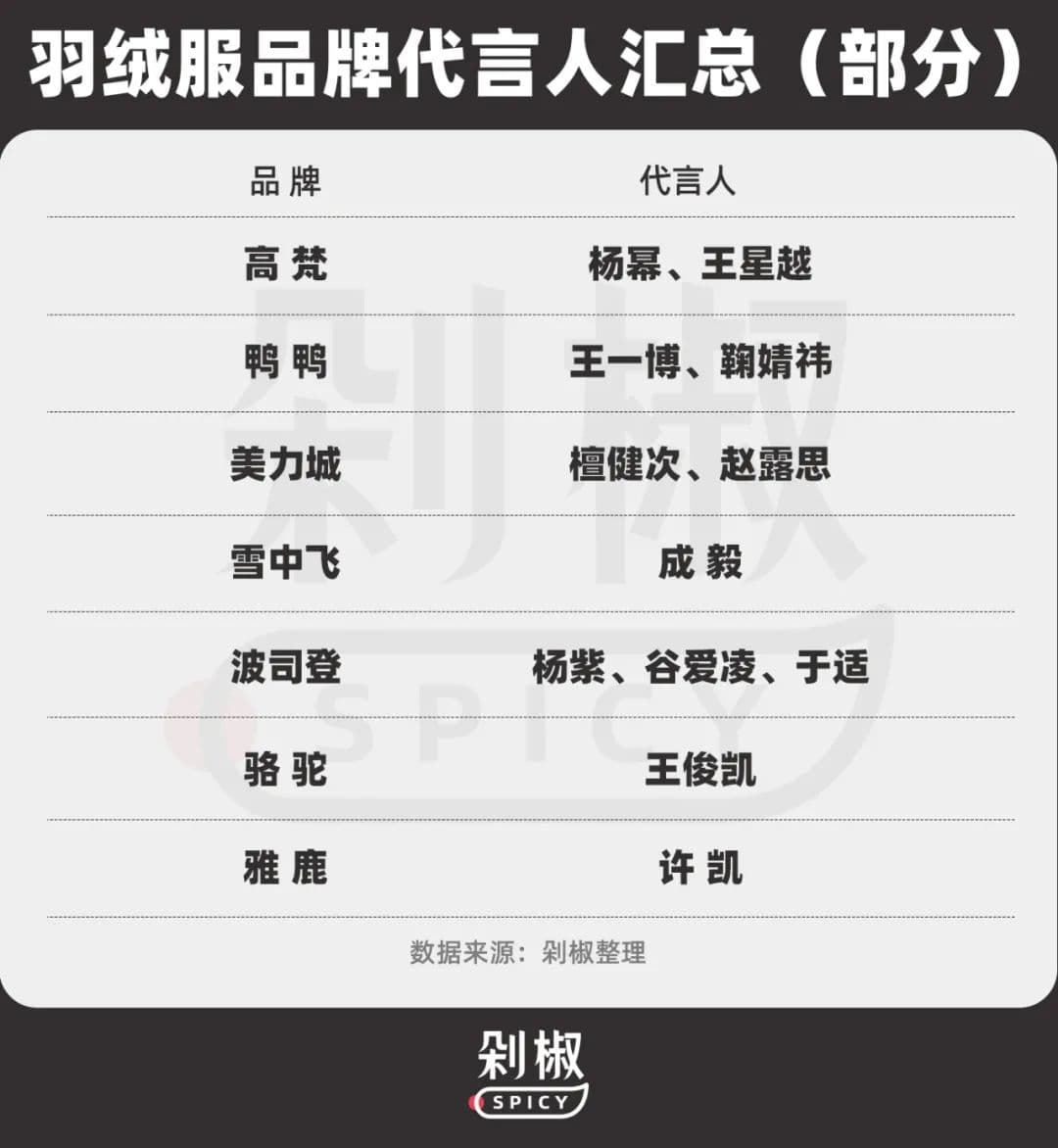今年的热风也让平台、商家加大了在羽绒服侧的营销投入。请代言人成为羽绒服品牌的时尚单品。