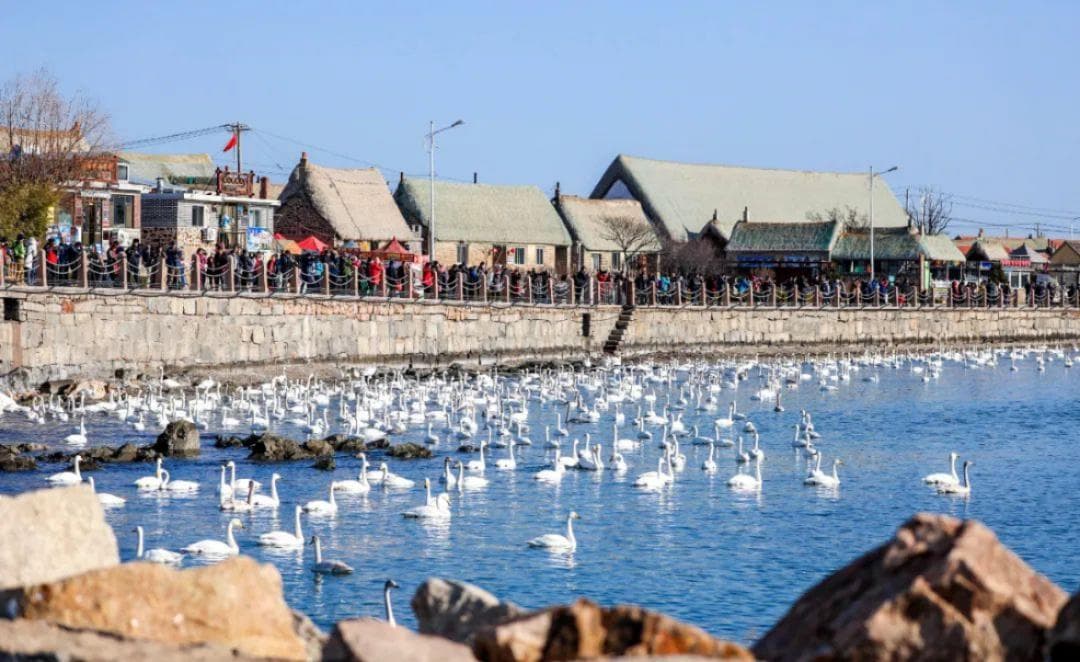 烟墩角村以其美丽的自然风光、丰富的海洋资源和独特的文化传统而闻名,是一个典型的胶东渔村。这里每年冬季,成千上万只天鹅飞临此地栖息,使烟墩角村成为了远近闻名的“天鹅村”。