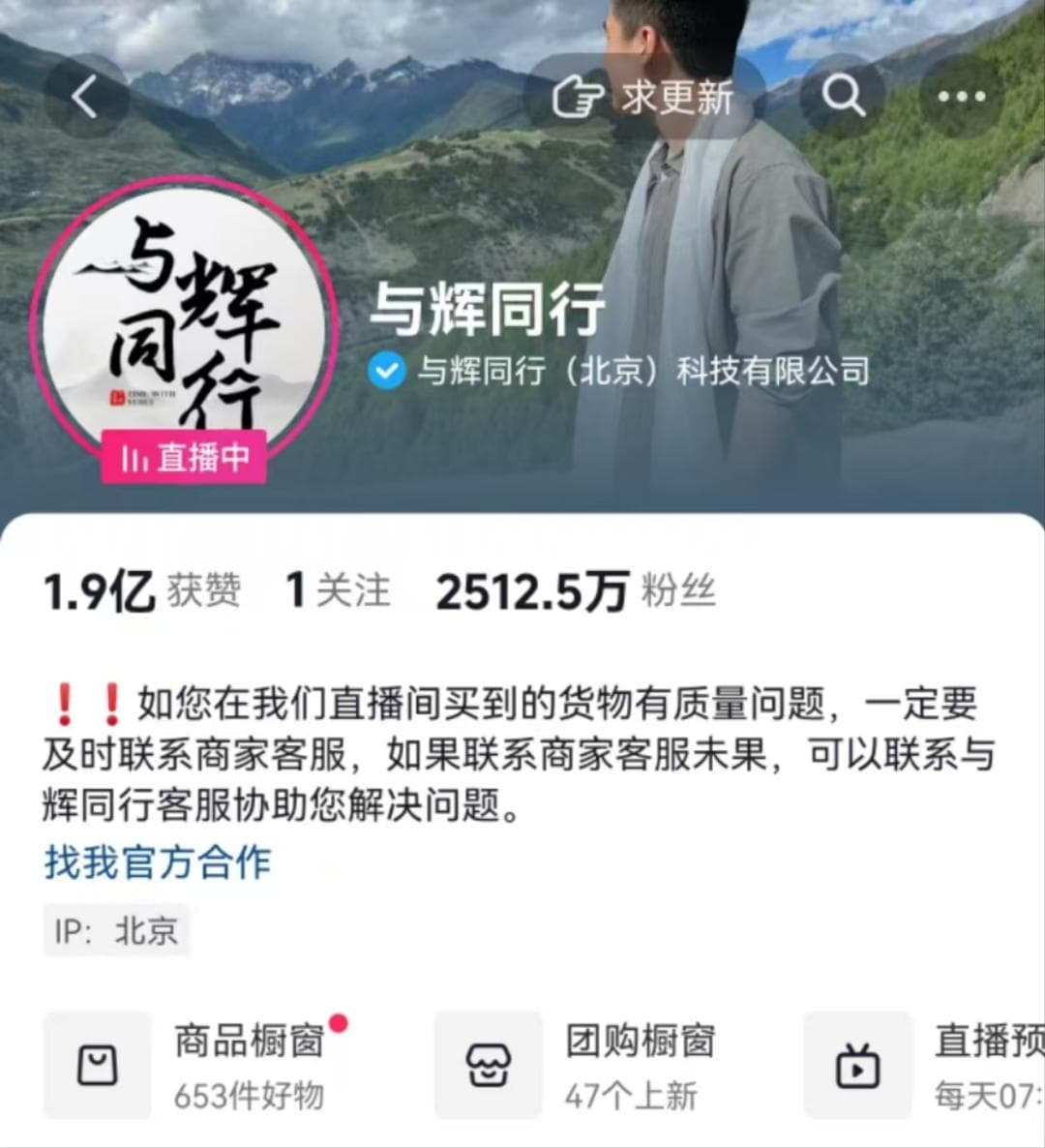 自今年7月25日,董宇辉彻底“单飞”后,其带货能力依旧在线。根据数据显示,董宇辉旗下“与辉同行”账号在抖音平台上的粉丝数已达到了2512.5万,并在短短几个月内销售额超过25亿元,其中两次大型直播专场销售额合计近5亿元。根据飞瓜平台显示,“与辉同行”还是今日(11月27日)抖音“带货达人榜/总榜/日榜”第1名。