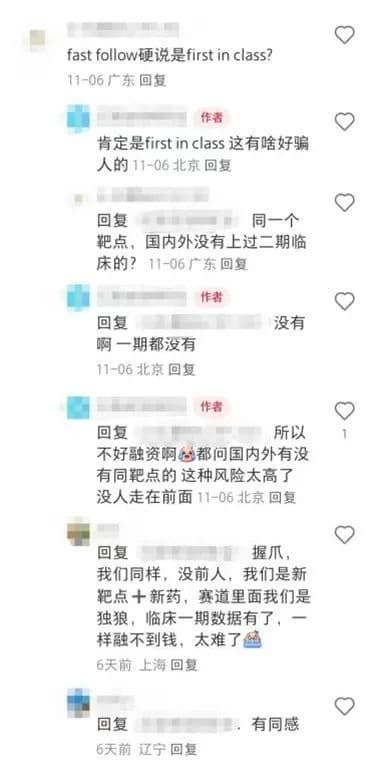 在对公司感兴趣的投资人到来前,何力大部分时间还是窝在实验室里看论文,他时刻关注着这个赛道又有哪些新靶点跑了出来,也担心自家产品是否会被反超。不过,由于帖子获得的回复和令人失望的消息太多了,发布大概一个星期后,他就删掉了这则帖子。
