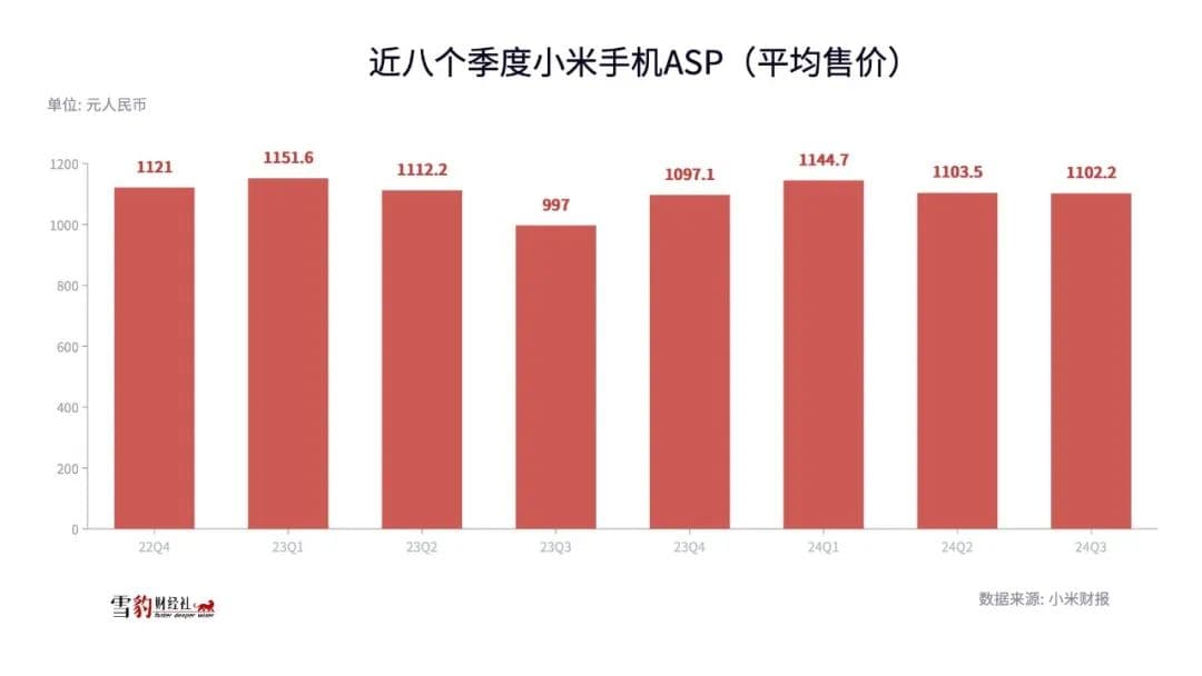 小米集团副总裁林世伟在Q3财报电话会上透露,2024年前九个月,小米高端智能手机销量占小米手机总销量的21.3%,同比提升了3.9个百分点。财报显示,小米智能手机ASP(平均售价)为1102.2元,较去同期提升10.6%,但仍然与高端品牌差距悬殊。
