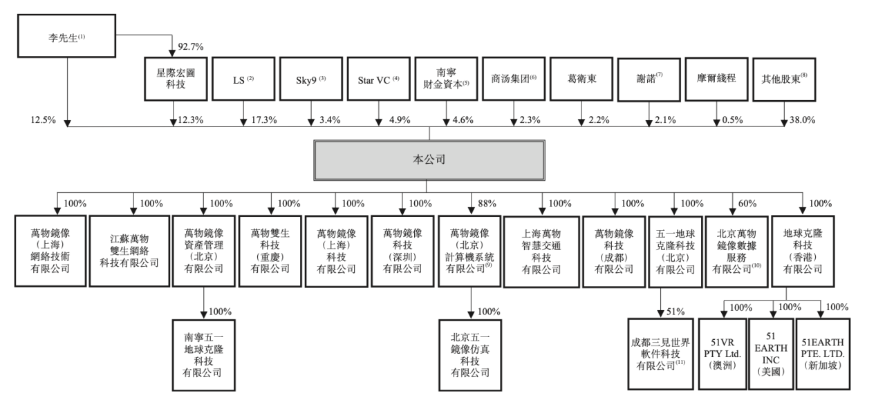 招股书显示,在18C章程下,光速光合和云九资本是51WORLD的领航资深独立投资者。光速光合通过LS 51World,持股17.32%;云九资本通过Sky9 51World,持股3.40%;商汤科技为五一视界的资深独立投资者,持股2.30%。