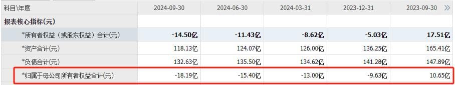 财报显示,自2021起傲农生物已连续三年业绩巨亏,截至2024年前三季度期末,其归属于母公司所有者权益达到了-18.19亿元。相比去年整年度,净资产负债情况继续扩大。当前,傲农生物已被实施退市风险警示。