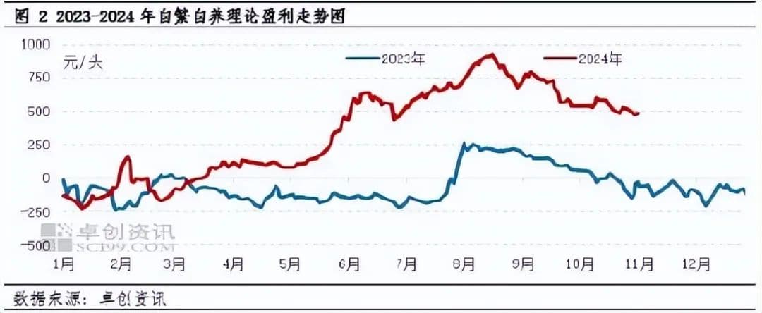 根据卓创资讯监测,2024年1-10月份生猪自繁自养盈利均值344.56元/头,同比上涨393.41元/头,涨幅805.34%。