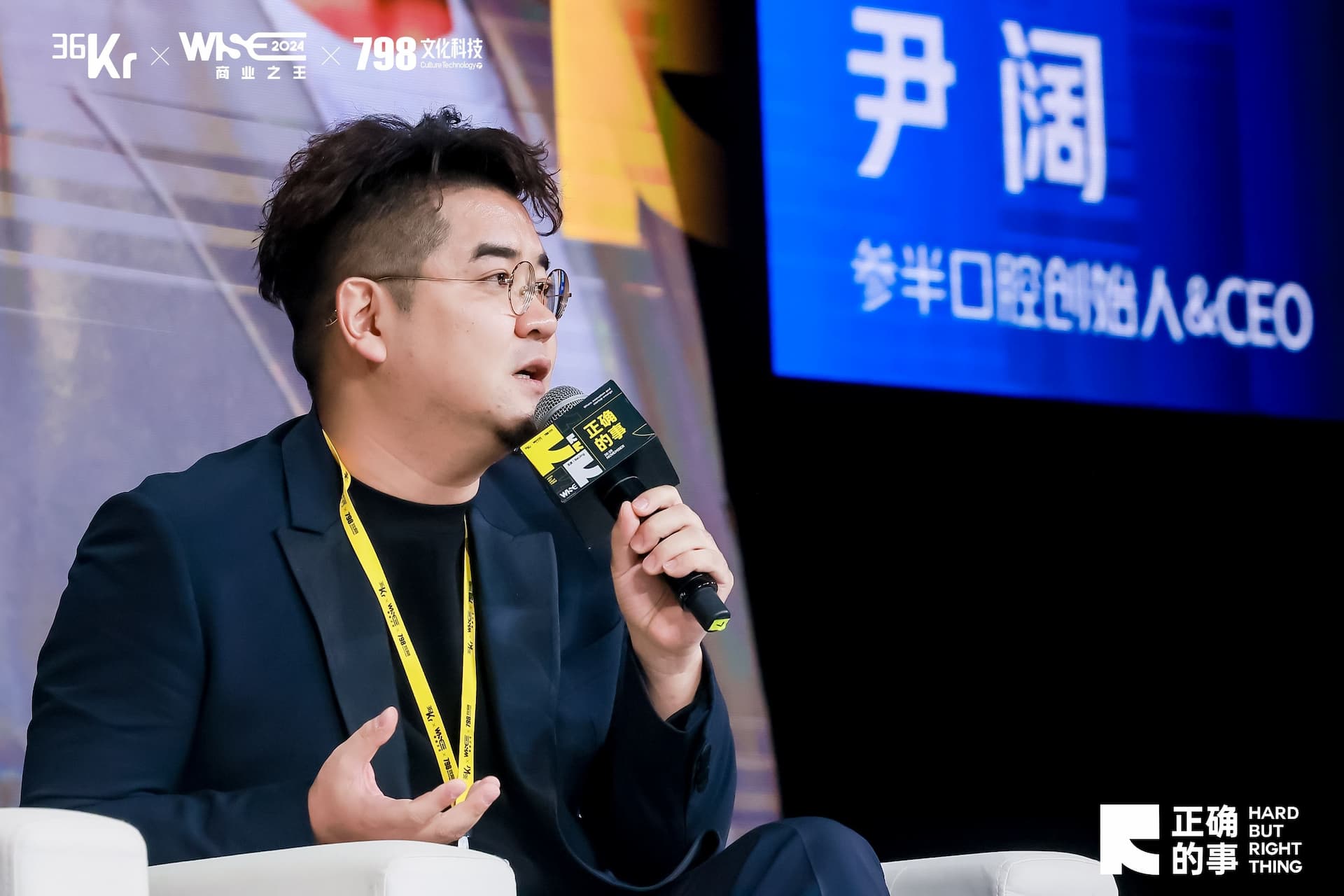 在28日上午的《正确的事情》圆桌对话环节,36氪CEO冯大刚与小仙炖鲜炖燕窝董事长、CEO苗树,君智战略咨询创始人、董事长谢伟山,参半口腔创始人、CEO尹阔进行了一场精彩的大咖对谈。