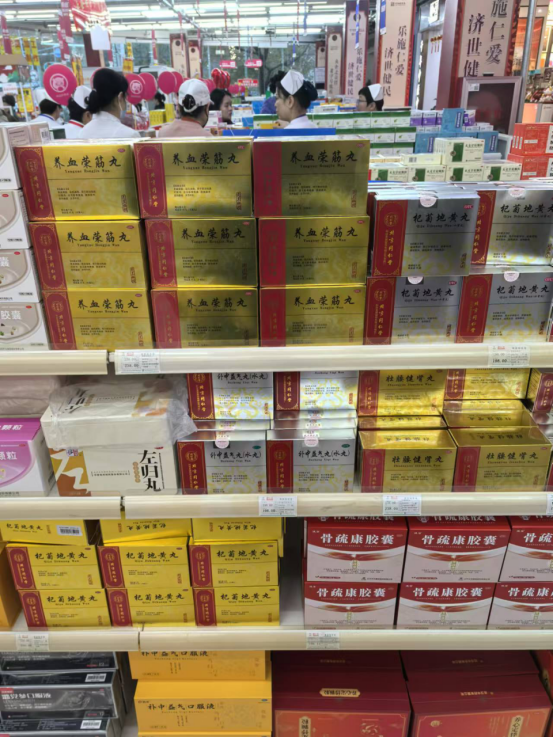 但财联社记者通过在多地走访发现,同仁堂产品在大型连锁药店市场仍存在较大的“空白”市场,财联社记者在重庆、上海多家主流连锁药店,均未看到同仁堂的产品,而在昆明的两家一心堂中仅看到有同仁堂生脉饮在售。