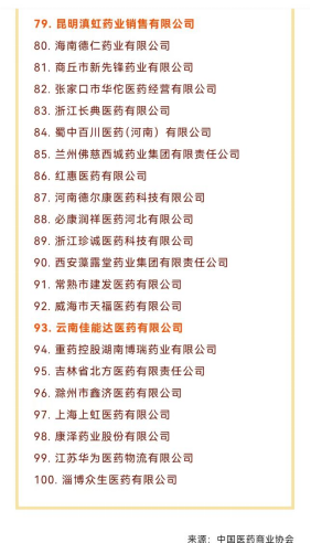 在中国医药商业协会发布的2023年医药批发企业百强名单中,红惠医药排名第86名。
