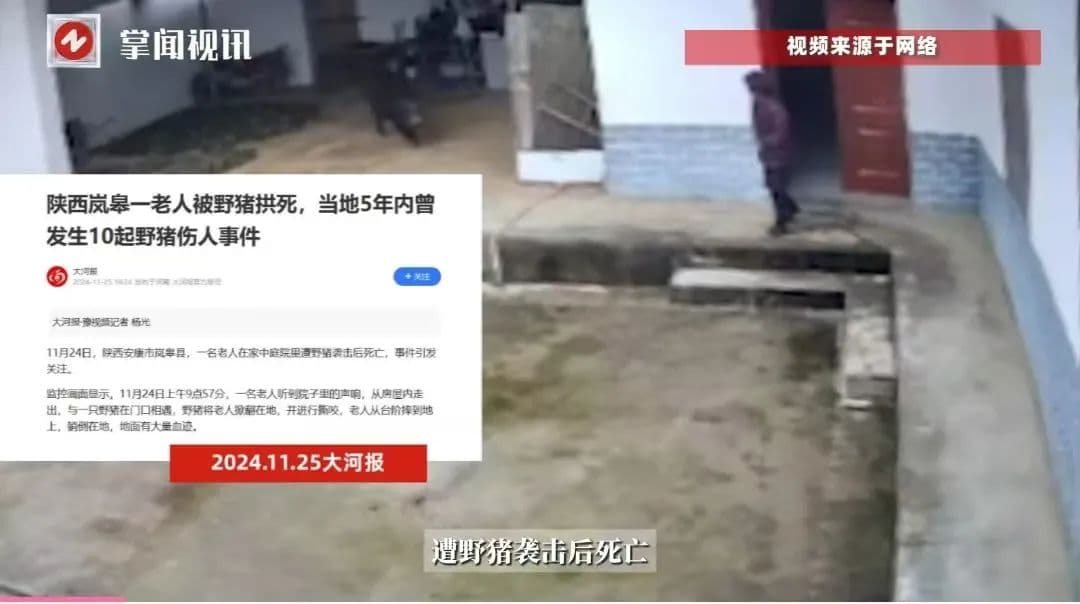 近期,陕西安康一县城的庄稼总有被破坏的痕迹,有人带猎狗追赶野猪,后者误闯村民家中,顶撞撕咬老人,老人受惊摔跤,经抢救无效死亡。时间再往前移一点,在南京街头,不时能看到猪哥的身影。其还曾闯入酒店,逃跑时撞到玻璃,路人避之唯恐不及。