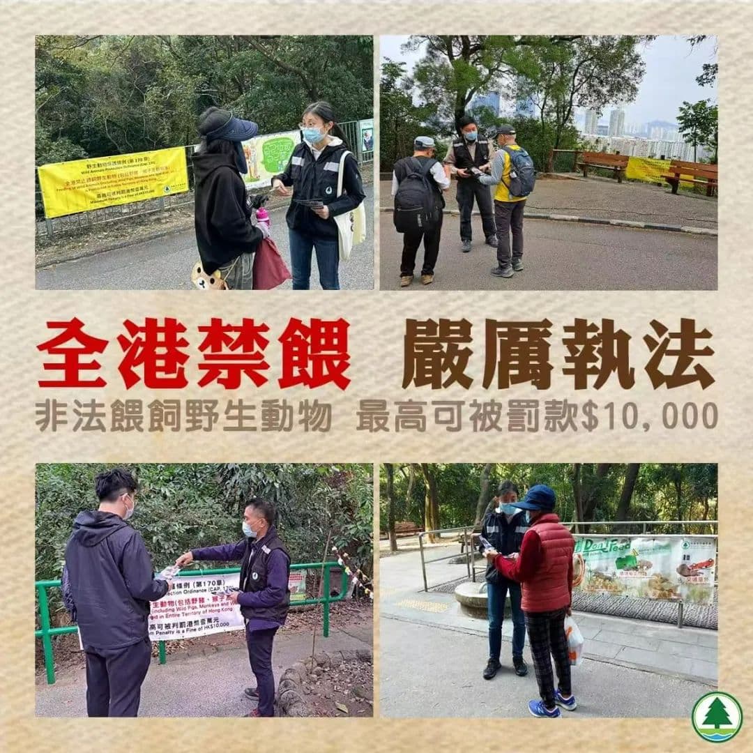 自2022年12月31日起,香港将《野生动物保护条例》指明的“禁止喂饲野生动物地方”扩展至全港。渔护署已对210名涉及非法喂饲野生动物的人士采取执法行动,其中30人涉及非法喂饲野猪,17人被成功定罪,分别被判罚款港币500至1000元不等。