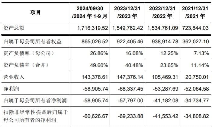 业绩情况首次对外披露。招股书显示,2021年至2024年前三季度,奕斯伟材料分别实现营收2.08亿元,10.55亿元,14.74亿元和14.34亿元;扣非净利润为-3.48亿元,-4.16亿元,-6.92亿元和-6.06亿元,尚未实现盈利。