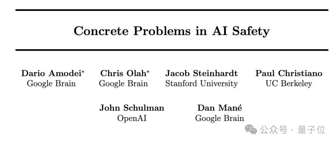前面提到的Anthropic创始人Dario Amodei2016年共一论文“Concrete Problems in AI Safety”中,指出了一些缓解方向,包括: