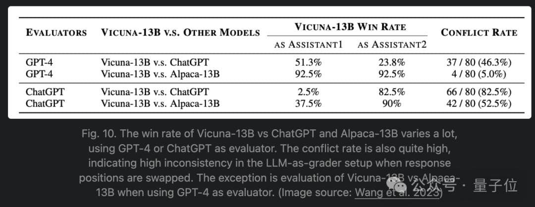 比如2023年一项实验中,简单改变候选答案的顺序就能改变结果,GPT-4倾向于给第一个答案高分数,ChatGPT(3.5)更倾向于第二个。