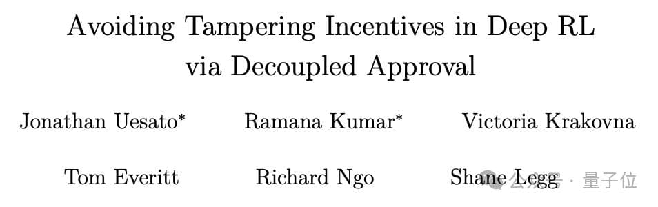 此外,谷歌DeepMind团队此前提出了“解耦批准”的方法来防止奖励篡改。