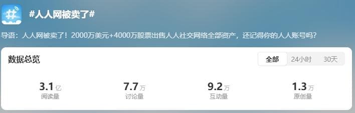 又熬过几年,到了 2018 年的时候,一则 “ 人人网被卖了 ” 的消息被公开,引发全网关注。