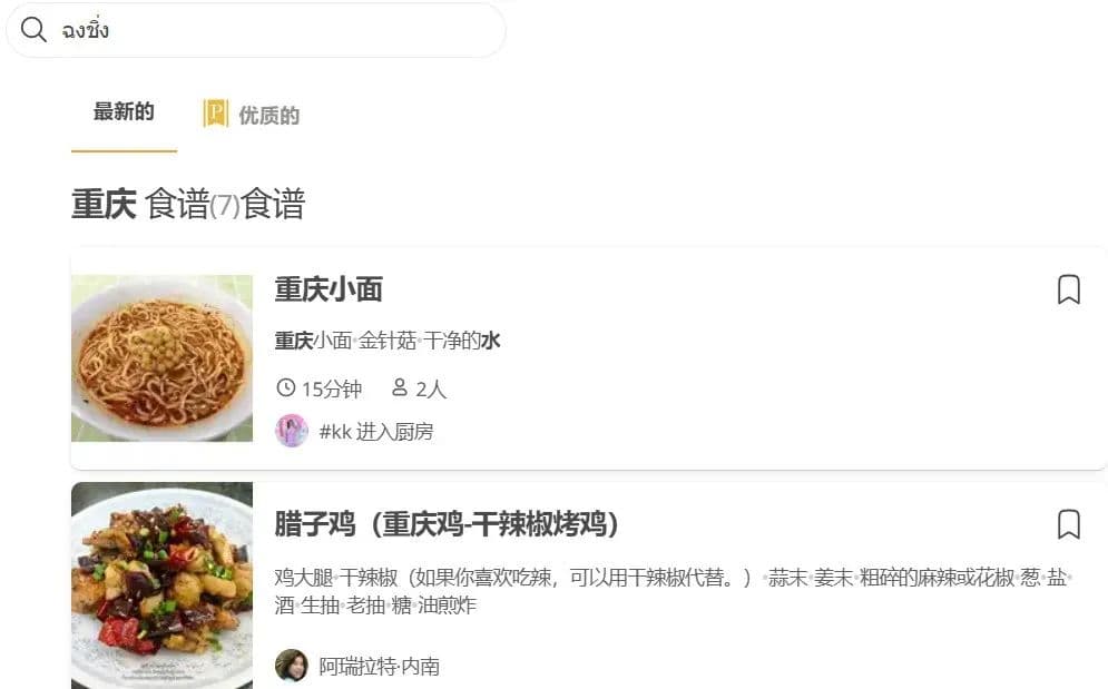 在食谱网站Cookpad上,甚至出现了泰语的重庆料理食谱。