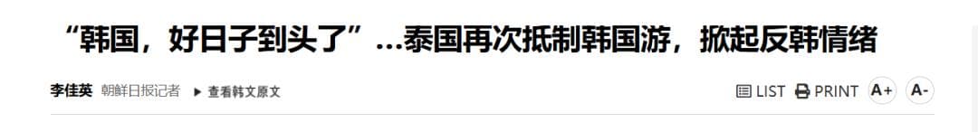 《曼谷邮报》曾报道,泰国旅行协会会长表示:韩国,好日子到头了。