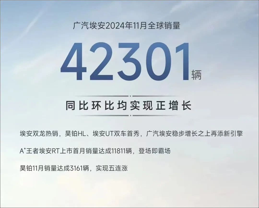 过去的11月,据埃安自己公布的销量数据显示,整个埃安的销量又回到了4万辆/月的水平,达42301辆,其中,昊铂也售出了3161辆新车。可见,在自我造血上,广汽新能源业务还是小有所成的。