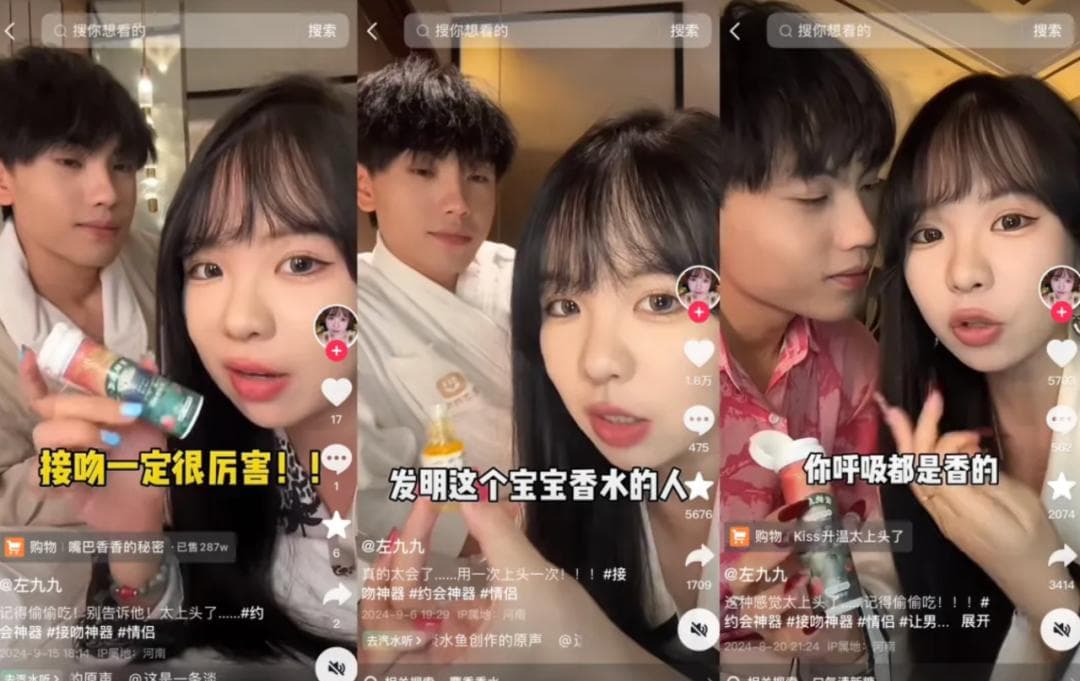 在“真的太会了……一开口都是香香的”“奢侈品内裤真的不一样,这个价格真的常见”“有对象的、有暧昧对象的、爱吃点重口味的,都要把它备上”“这种感觉太上头了,记得偷偷吃”等多个视频中,她与男友在日常互动中将产品带出,吸引用户下单。
