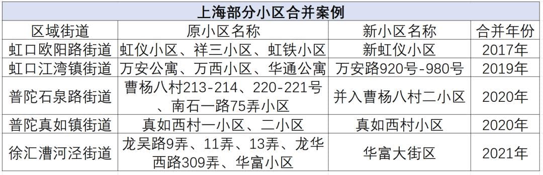 我还梳理了一些上海微小区合并的案例,主要分布在虹口、普陀、徐汇等区域,微小区多,老龄化严重。