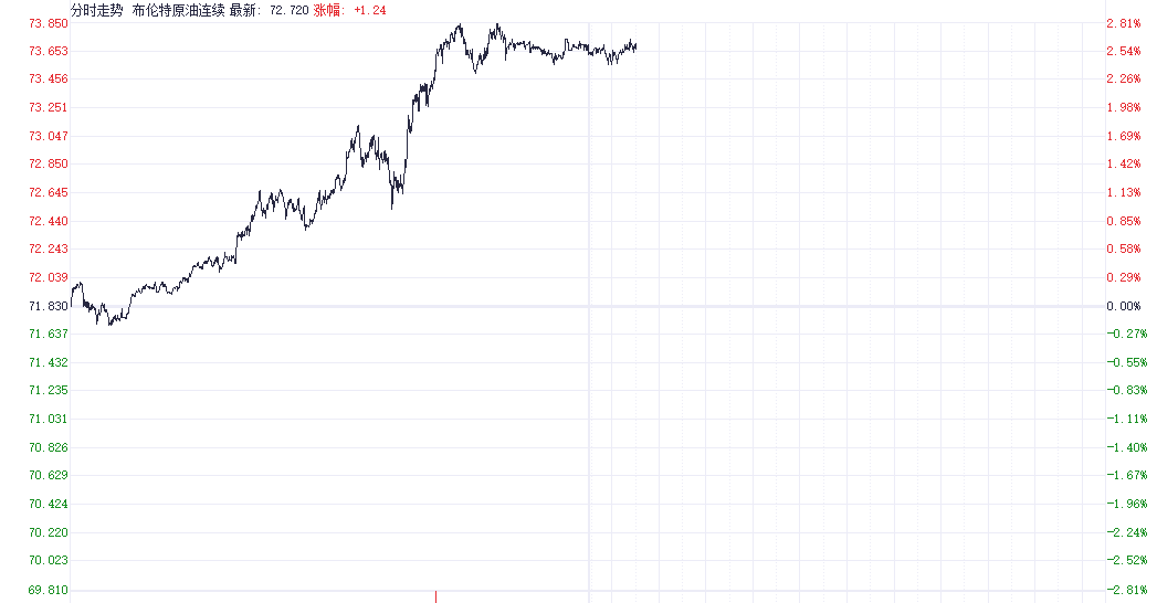 财联社12月4日讯(编辑 胡家荣)受美国制裁伊朗石油消息刺激,布伦特原油期货昨日上涨2.59%,今日再度小幅上涨。截至发稿,涨0.04%,报73.65美元。