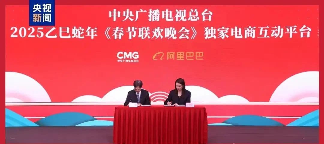 据央视新闻12月2日报道,中央广播电视总台在京举办 2025 乙巳蛇年“大春晚季”版权文创与广告合作签约暨春晚吉祥物发布活动。总台总经理室与阿里巴巴签订总台 2025 乙巳蛇年《春节联欢晚会》独家电商互动平台合作项目。