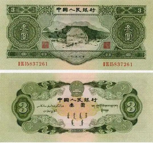 新中国成立后,百废待兴,万事开头难,我国委托苏联帮助印制了10元、5元、3元钞票。
