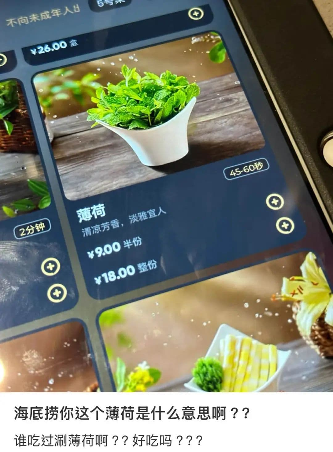 海底捞5月推出新品薄荷叶,听到这个消息,爱吃火锅和爱吃薄荷的人都狠狠皱起了眉头。据为数不多尝试过的人说,一筷子下去整个汤底都变成了薄荷味儿,挺提神醒脑,吃完火锅有清晨早起的清爽感。但如果真的点了,“还是建议生吃,比涮着好接受”。
