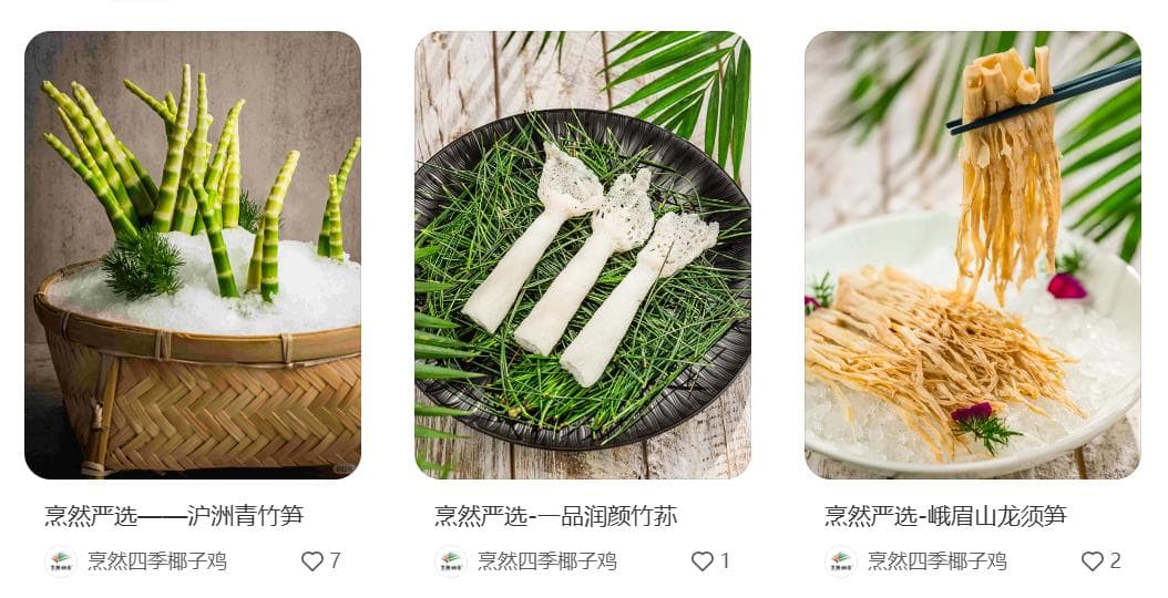 比如北京的烹然四季椰子鸡火锅会在店里实时直播有机蔬菜大棚的画面,你一边涮着菜,一边还能看着菜是怎么从地里长出来的,一口“峨眉山龙须笋”下肚,仿佛自己亲临了峨眉山视察。
