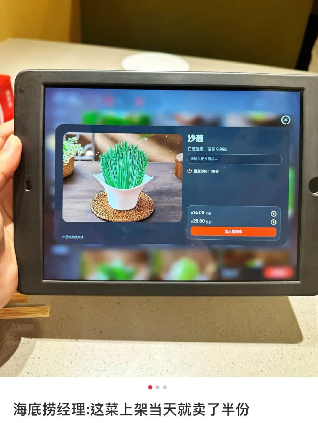 海底捞前有现扯面,后有现剪现吃豌豆苗,一盆端上来,再给你上一把绿色小剪刀,剪一把涮一把,仿佛在田间地头吃火锅,还能感受泥土的芬芳。剩下的,连盆打包回家还能继续一边种一边吃,吃完喷点水,过两天说不定又能收获新一茬。