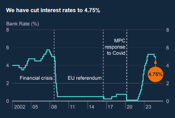 年内,英央行已经降息两次至4.75%,并发出了进一步削减借贷成本的信号。但由于对服务业通胀粘性的担忧,该行正谨慎行事。贝利表示,尽管可能出现多种不同的通胀情景,但该行将追求“渐进”降息。