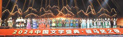 正如此次盛典的主题:金色的骏马从光影层叠的长河中跃出,在推动新时代文学高质量发展的新征程上,“人民大地 文学无疆”。