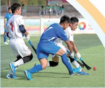 河南队和宁夏队选手在男子木球比赛中。