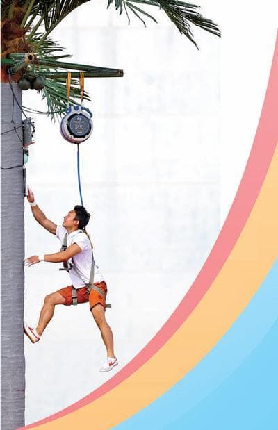 贵州队选手在攀椰竞速项目男子9米预赛中。