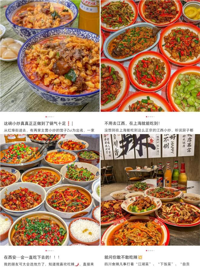 湘菜出圈不久后,江西小炒也紧跟其后走向大众视野。今年 4 月份,江西小炒成为网络热点,在全国悄然出圈,并在社交媒体上斩获了巨大曝光。在抖音上,相关话题的曝光量高达 2.8 亿;小红书上,关于它的笔记超过 1 万篇。
