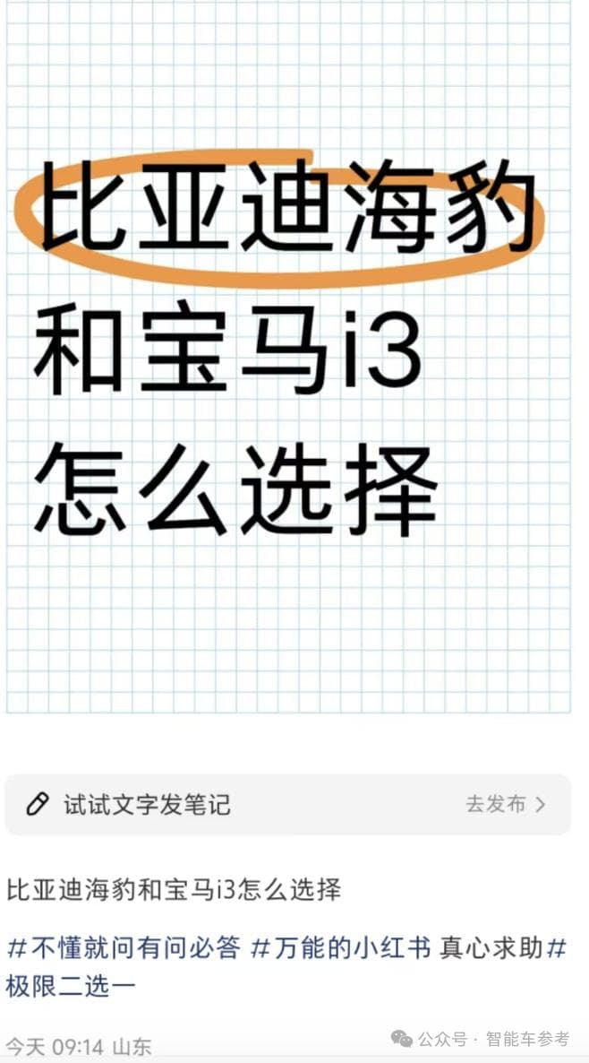 于是,有意思的来了,也就是咱们开头看到的,准车主开始在宝马和比亚迪之间犹豫了,豪华品牌的地位开始动摇。