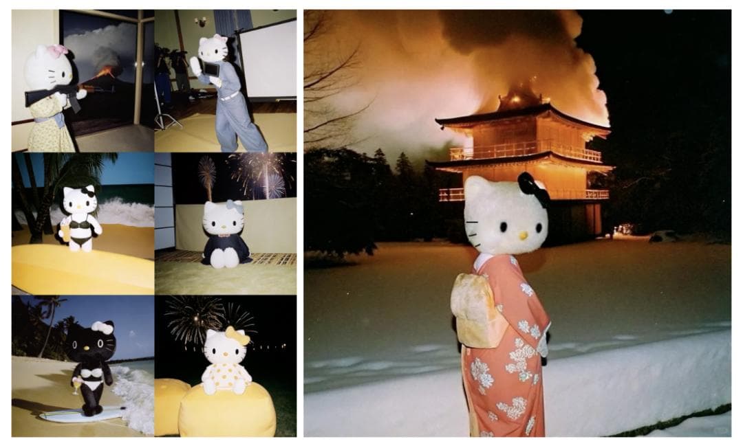 最近刷朋友圈,发现全世界的头像都变了。清一色的Hello kitty穿着奇装异服,出现在各种诡异场景:打拳击,摇呼啦圈,美黑后穿着比基尼度假,手拿步枪瞄准富士山……还有最经典的一张,Kitty猫身穿和服回望镜头面无表情,背后是熊熊燃烧的金阁寺。