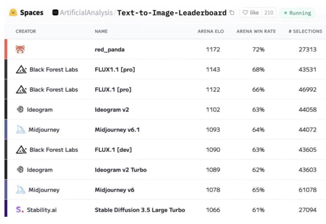 大家都在讨论这只强势登顶的“小熊猫”到底何方神圣,有人猜是即将到来的Midjourney v7,也有人说是OpenAI即将面世的新模型。众说纷纭之际,一家名为Recraft的公司跑出来发推特认领,表示red_panda源于自家最新训练的Recraft V3模型。