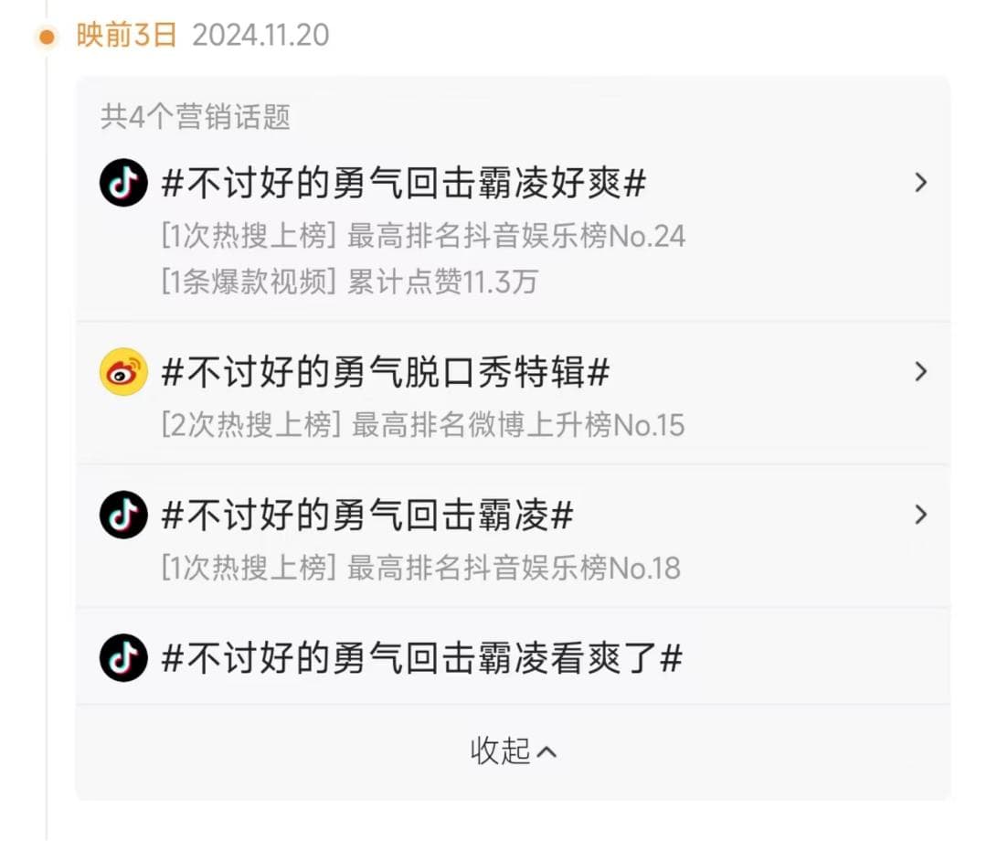 尽管播放量不尽如人意,但这类脱口秀题材电视剧在社交媒体上的讨论热度却持续高涨。以《不讨好的勇气》为例,该剧在抖音影视榜上的热度甚至仅次于热门剧集《永夜星河》。