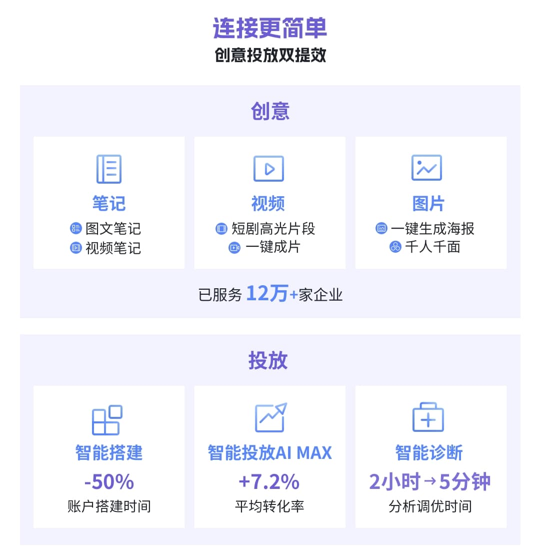 据最新数据显示,在规划阶段大模型加持下,投放平台将账户搭建时间降低50%,在实施阶段,AI Max能助力企业实现⾏业专家般的盯盘和优化能⼒,平均转化率提升7.2%,在反馈阶段,则能将分析调优所需时间从2⼩时降低到5分钟。