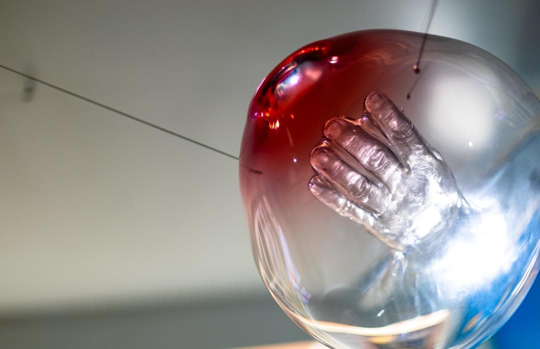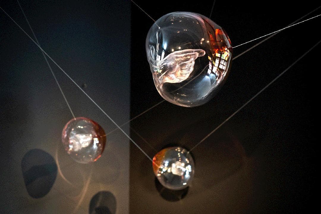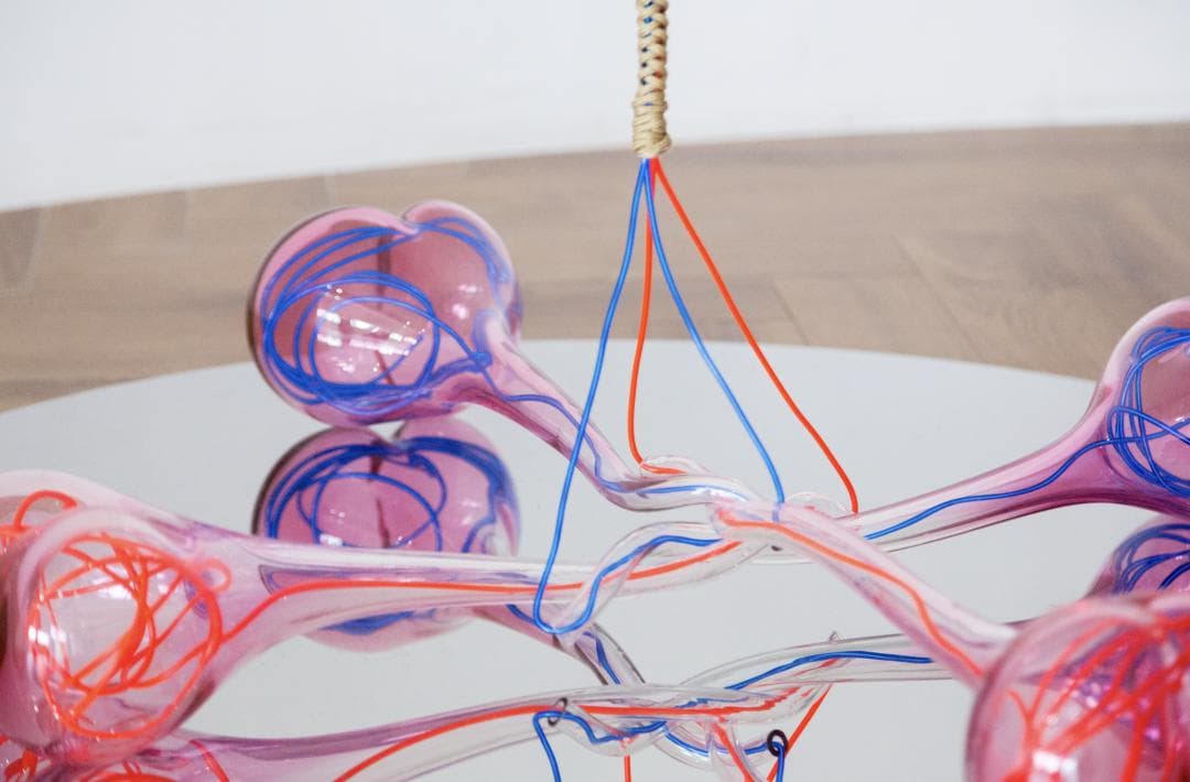 谢文蒂经常用玻璃吹制工艺来创作,吹制工艺指的是用高温将玻璃熔化(保持在1200度),再用工具将熔炉里的玻璃料取出来吹制塑形。此时玻璃呈液体蜂蜜状,晶黄闪亮,格外诱人。