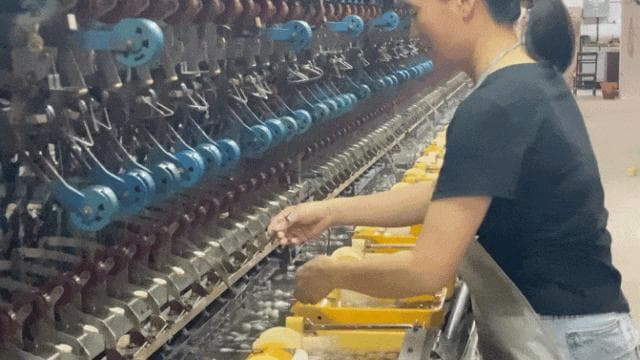 在佛山南海丝厂看到女工们站在几大排机器前,将蚕丝从蚕蛹身上剥离出来,熟练地将比头发丝还细的蚕丝分离、打结,她们手指翻飞的动作特别吸引人,很有力量感,当时我就想用吹制玻璃把她们的手部姿势表现出来。