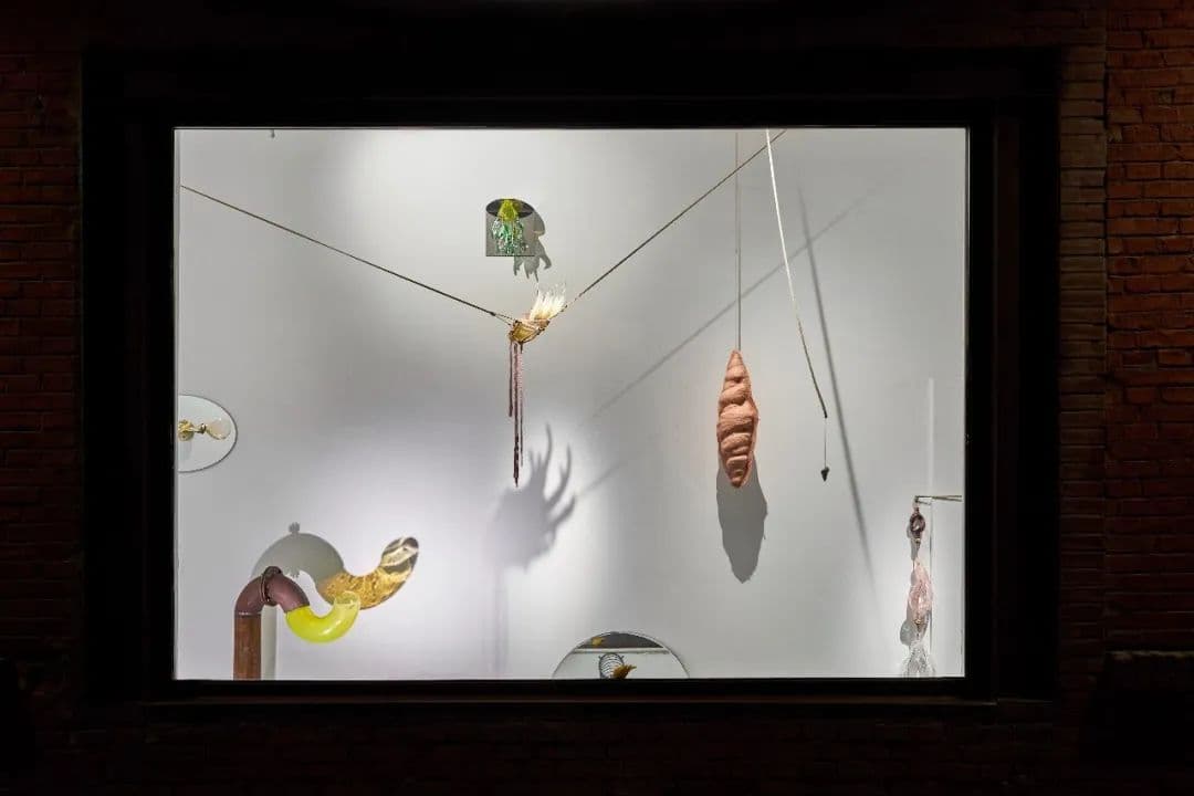 今年11月,我的橱窗个展在北京重美术馆开幕。在两扇大窗户里,我放置了十多件装置作品。窗户引人窥视,我想要给观众带来一场寻宝体验,通过绳子的线索、镜子的反射去发现这些“调皮的”物件。