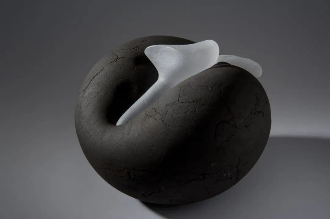 陶瓷、玻璃、金属结合的作品《镜像(角)》
